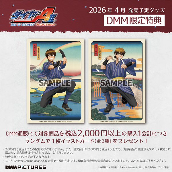 DMM通販ではAnimeJapan2026先行販売グッズを税込2,000円以上購入で、1会計に付き1枚イラストカードをプレゼントいたします。